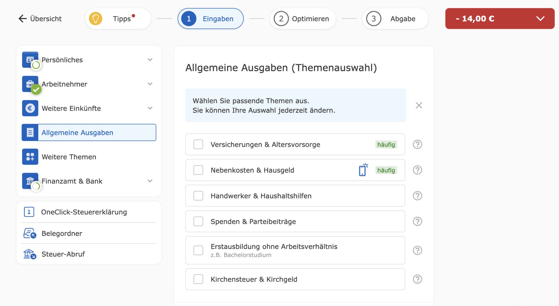 Besonders günstiges Steuerprogramm, basiert auf der Steuersparerklärung.