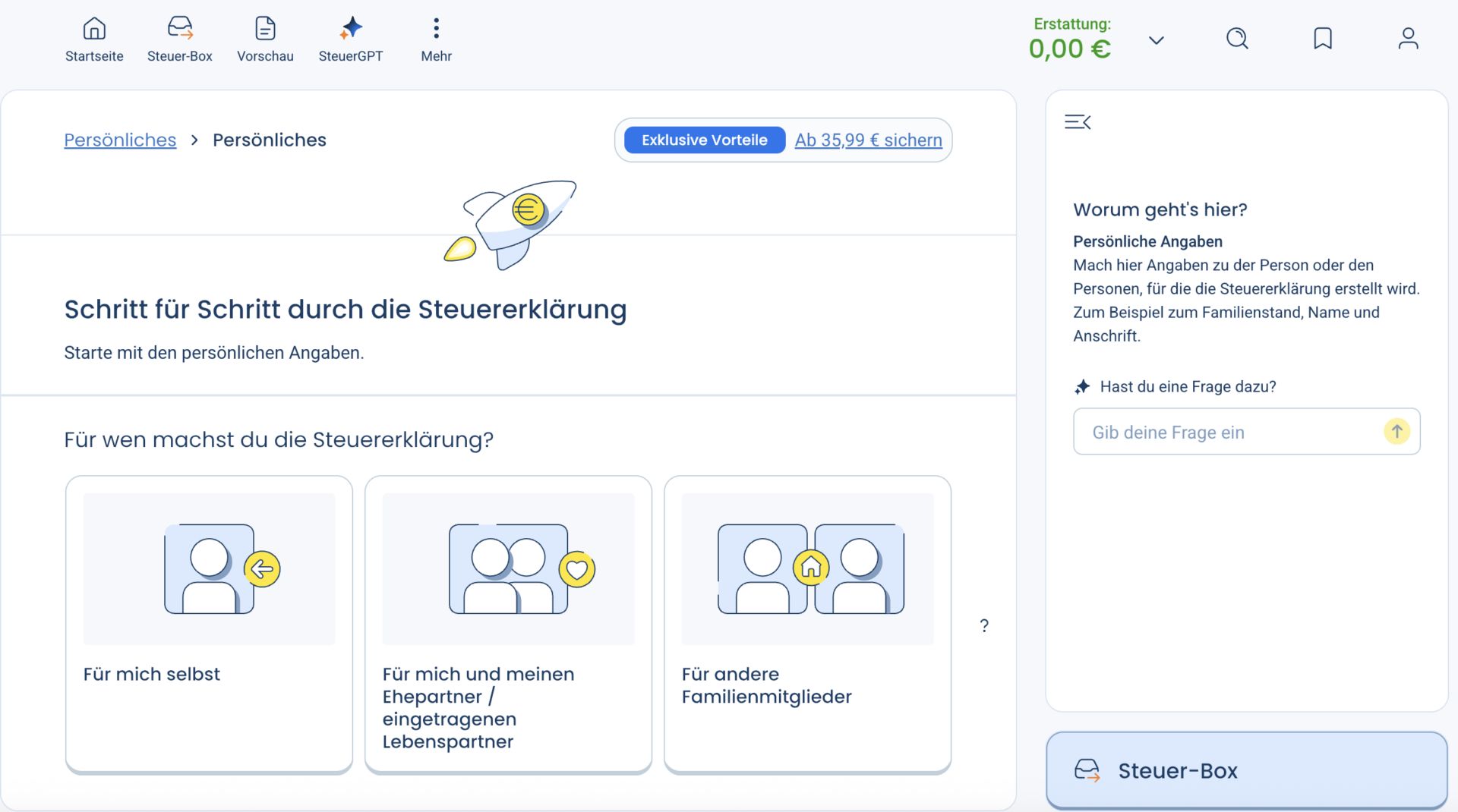 Während der Bearbeitung zeigt das Programm kontinuierlich die mögliche Steuererstattung oder -rückzahlung an. Ein KI-gestützter Chatbot steht rund um die Uhr für Fragen zur Verfügung. Automatische Plausibilitätsprüfungen und Günstigerprüfungen helfen, Fehler zu vermeiden und die maximale Erstattung zu erzielen. Nach Fertigstellung kann die Steuererklärung digital ans Finanzamt übermittelt werden.